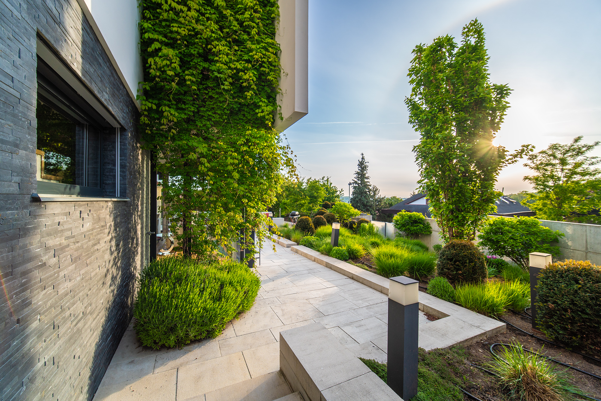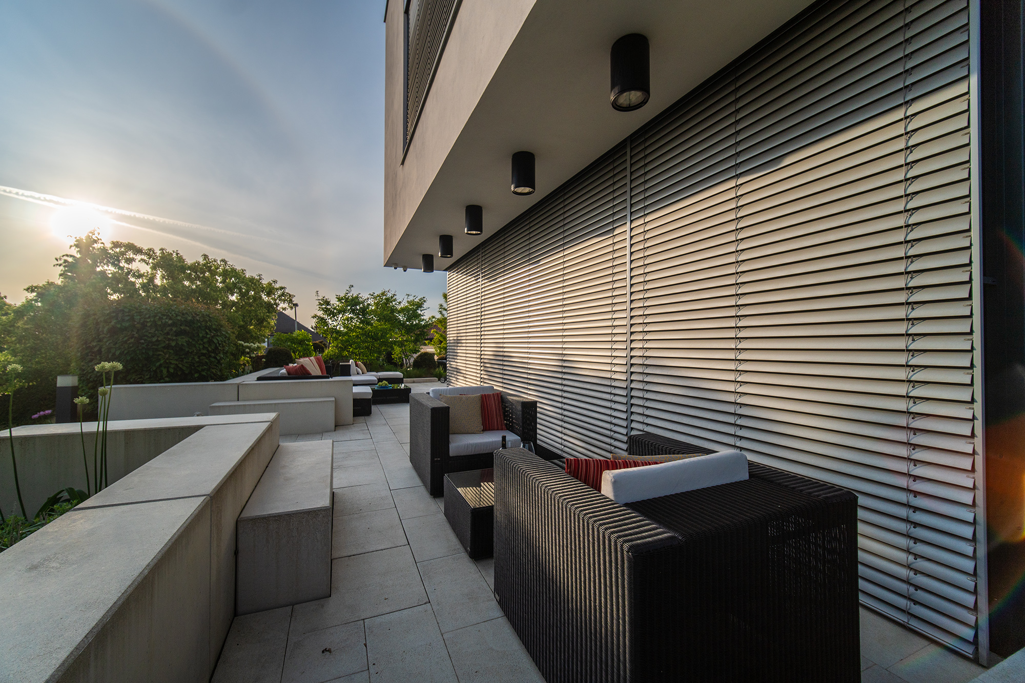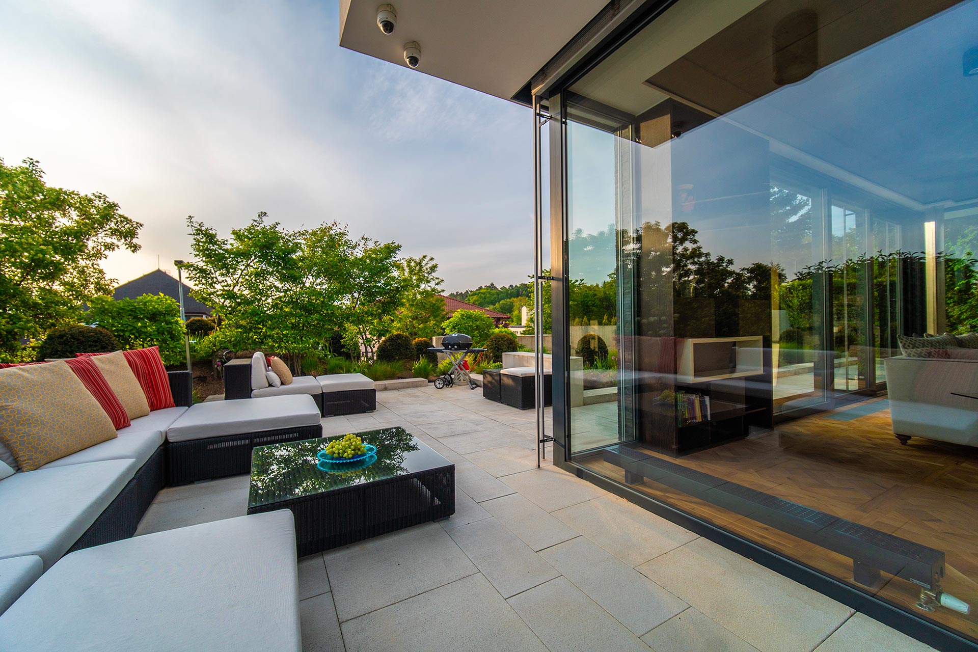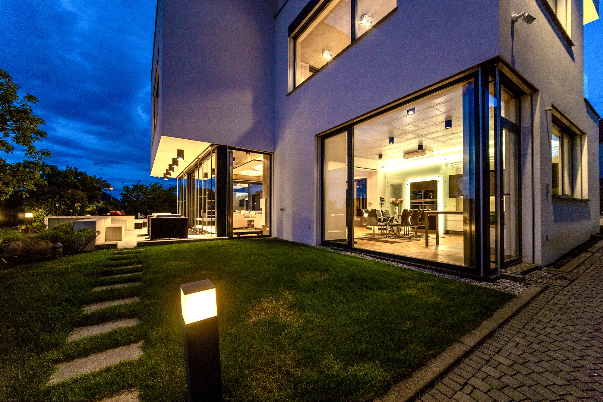 Z domu je přímý vstup na zahradní terasu s příjemným sezením. Zahrada je v noci příjemně osvětlena zahradními světly.