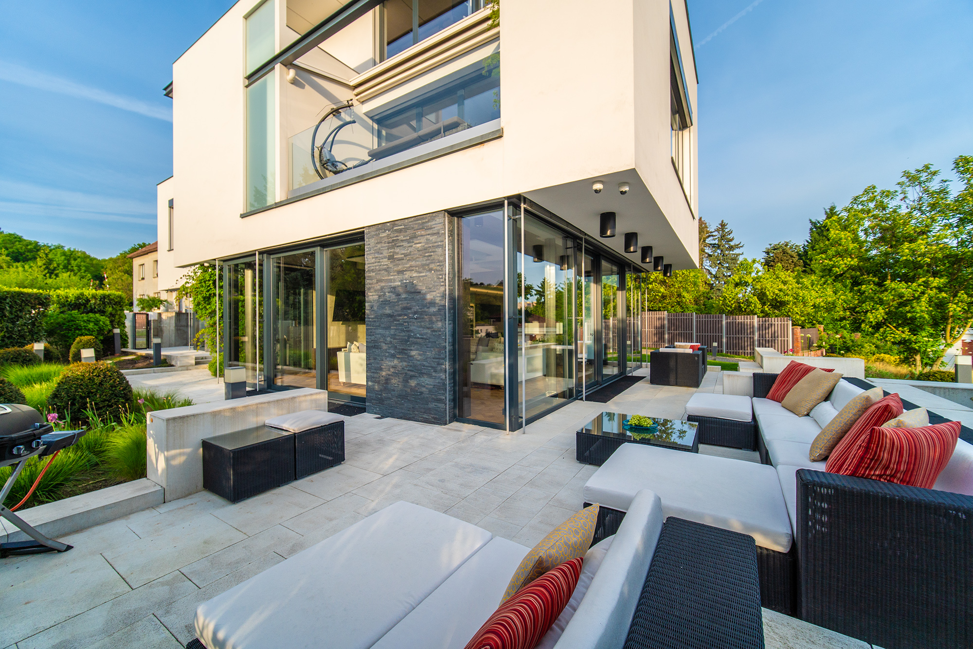 Z obývacího pokoje i kuchyně je vstup na prostornou terasu se zahradním nábytkem, která přímo vybízí pro společné sezení venku při západu slunce či pořádání garden party s přáteli.