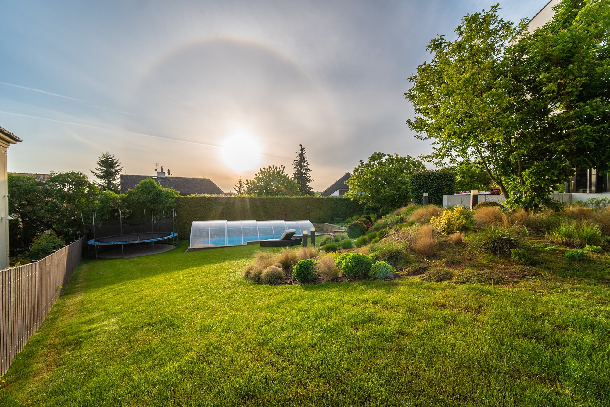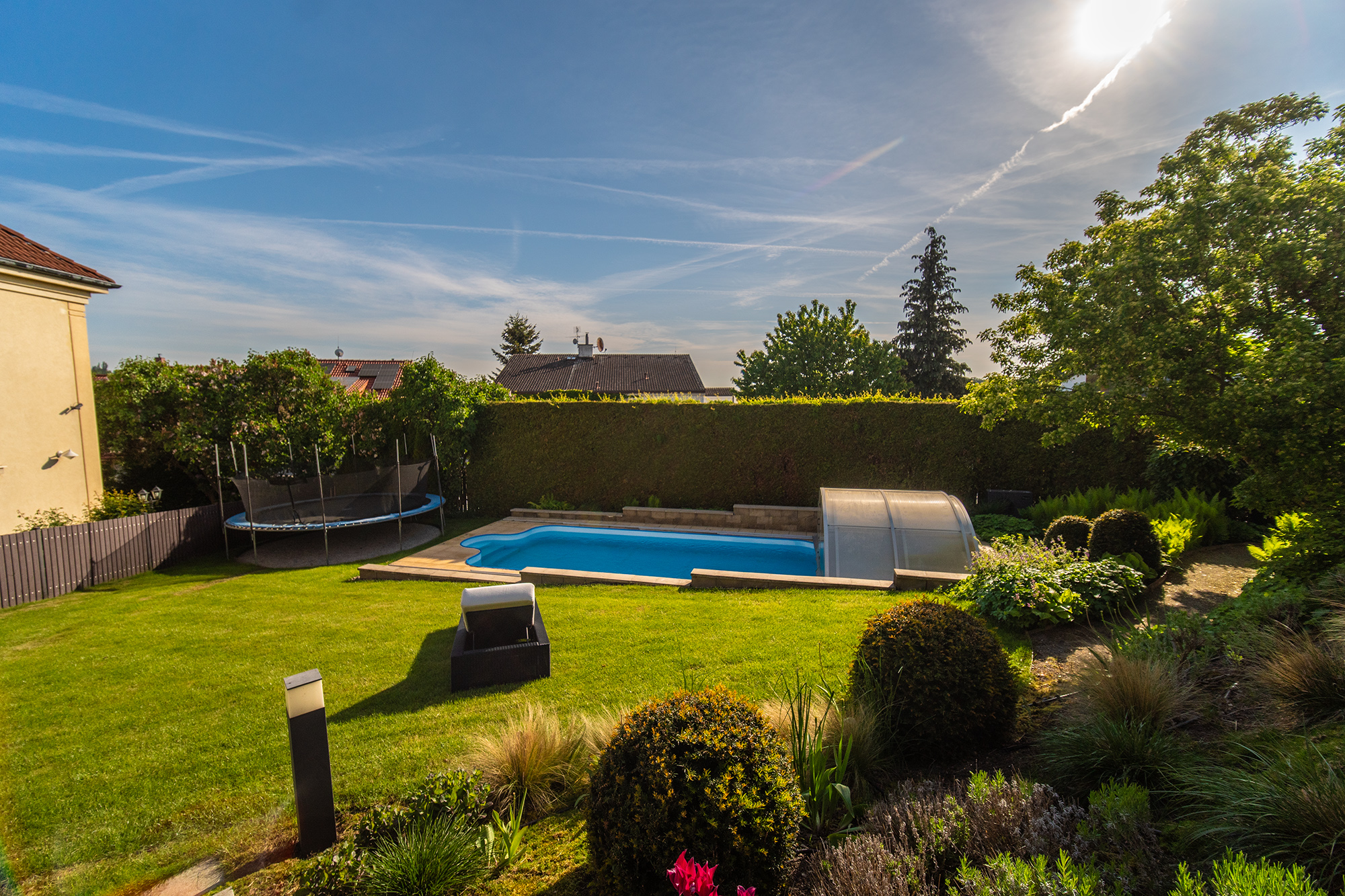 Udržovaná zahrada s výměrou 1009 m2 nabízí vlastníkům soukromí a klid. Je zde retenční nádrž na vodu napojená na dešťové svody hlavní stavby, rozvedený automatický závlahový systém.