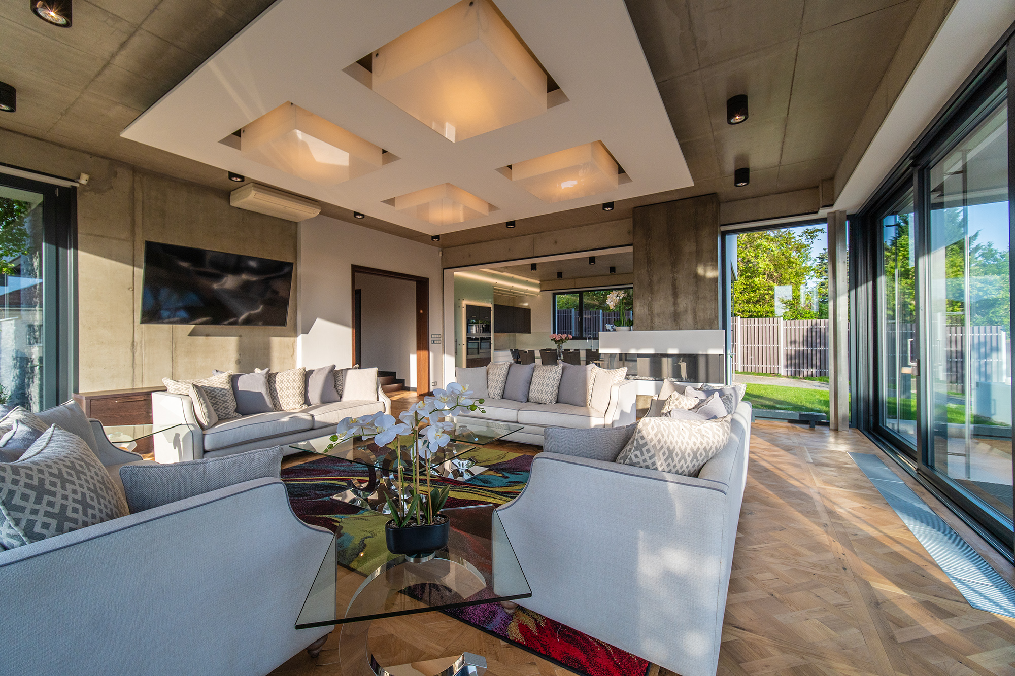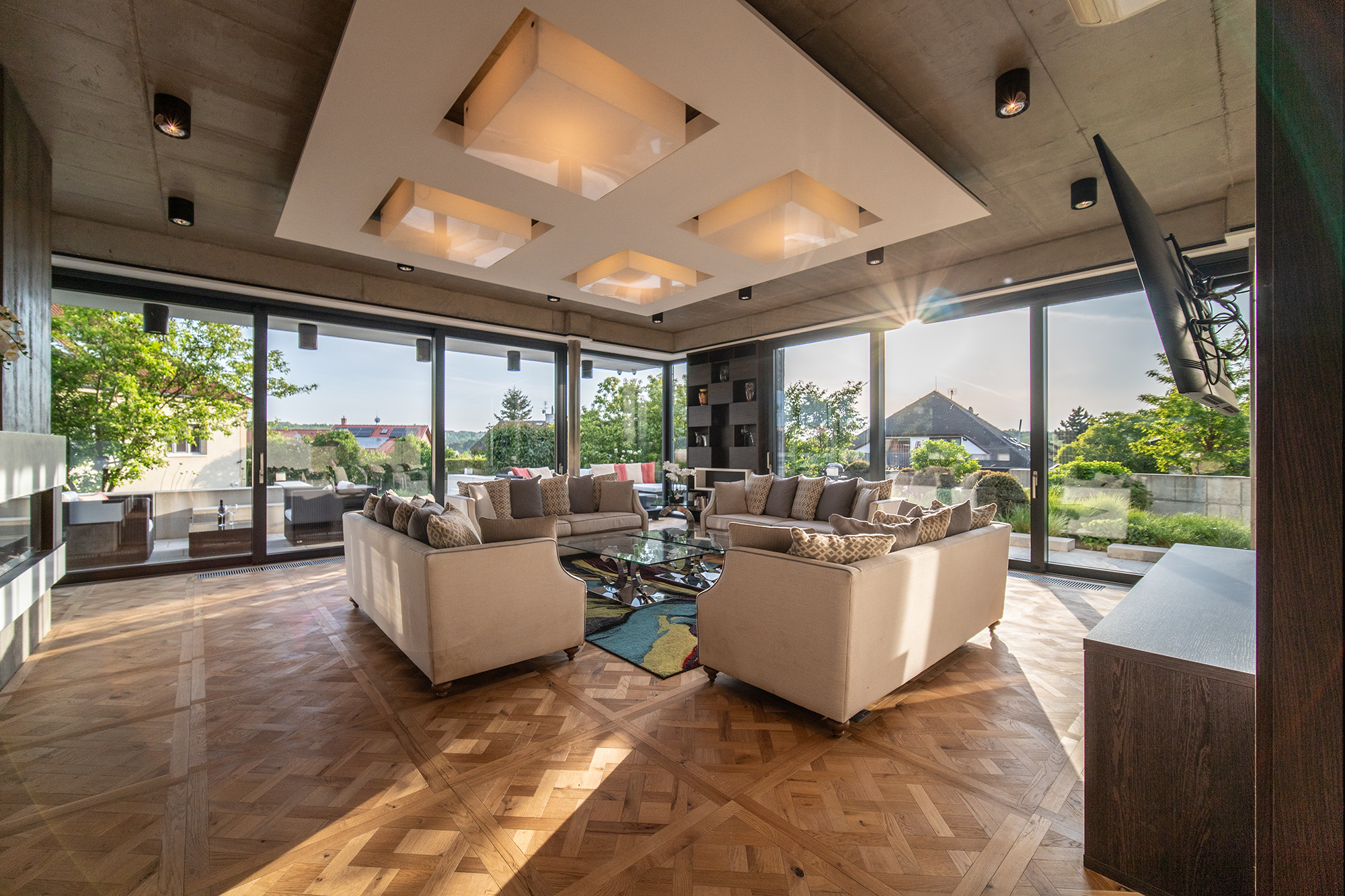 Ve všech prostorách v domě jsou umístěny klimatizační jednotky. Celý dům je vybaven moderními designovými interiérovými světly. Velkoformátová okna mají automatické el. žaluzie s automatickou kontrolou síly větru.