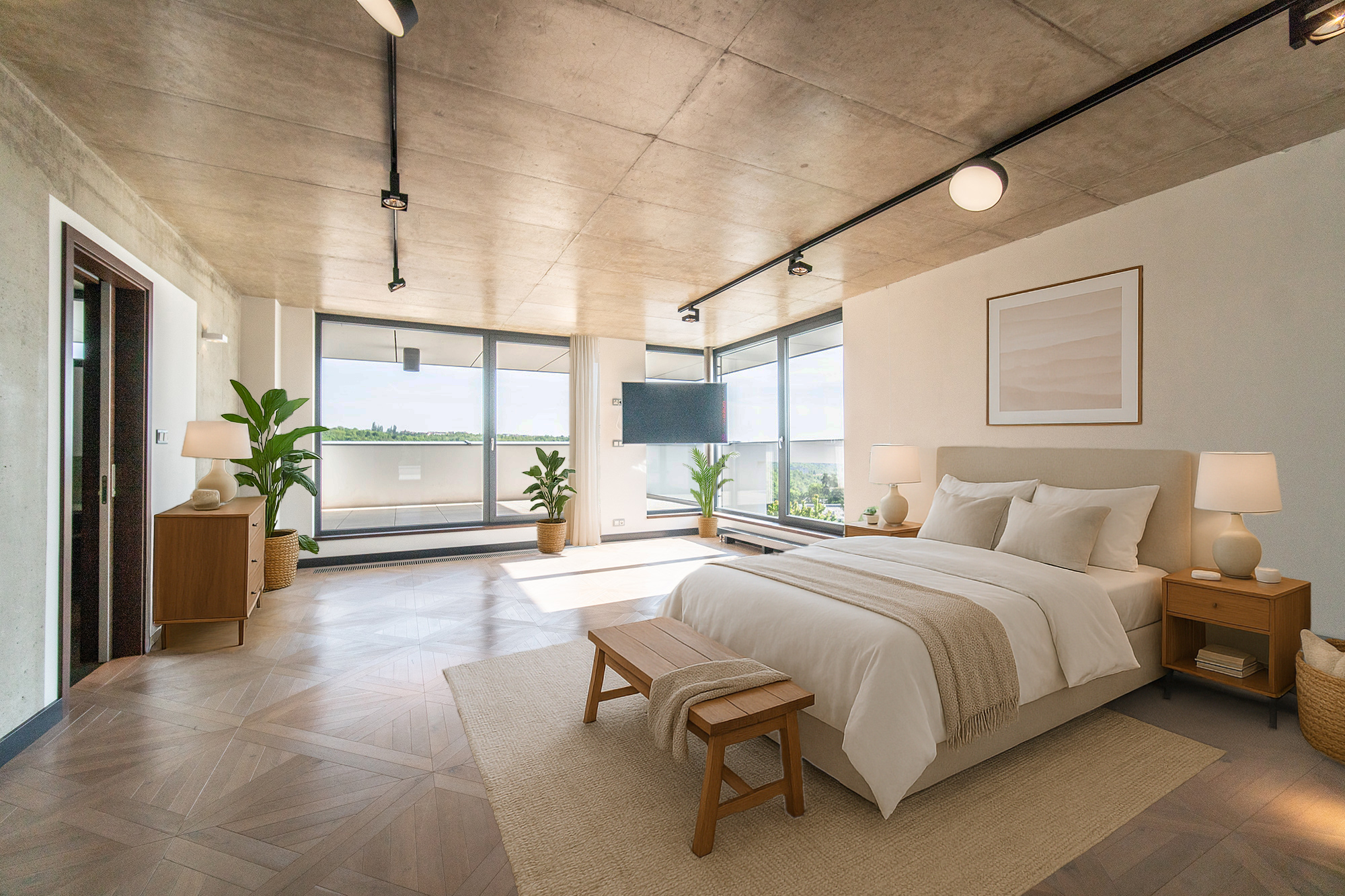 Master bedroom (39 m²) s vlastní koupelnou (19 m²) a šatnou (17 m²), kuchyňka |