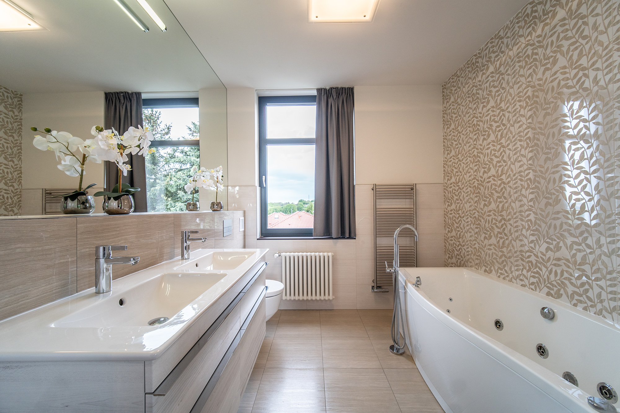 Koupelny v 2.NP a 3. NP jsou vybaveny vířivými vanami.