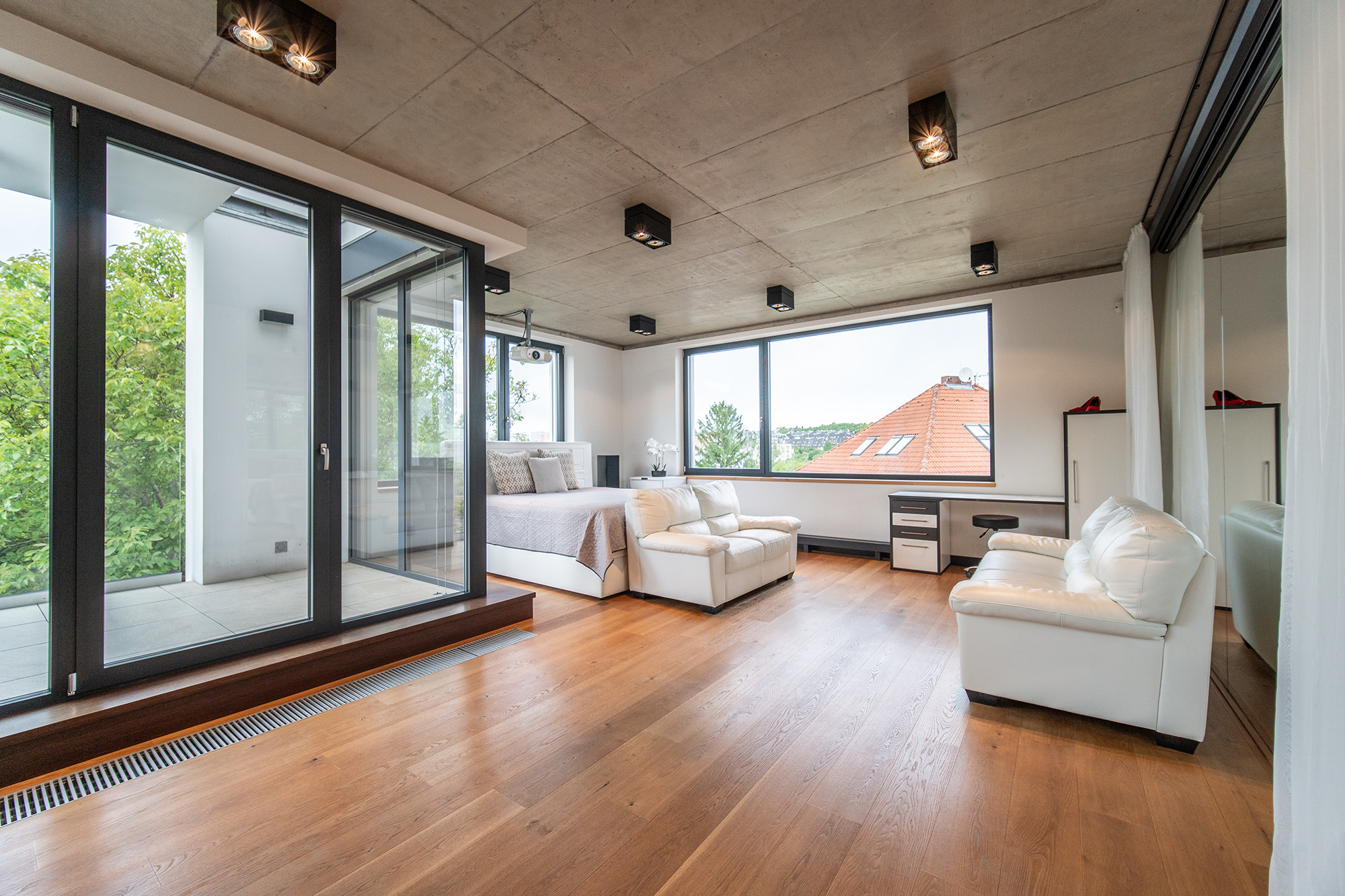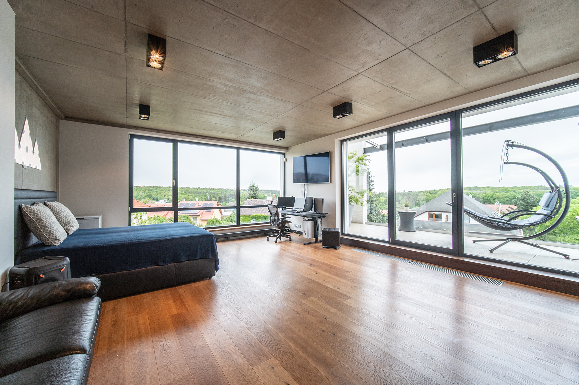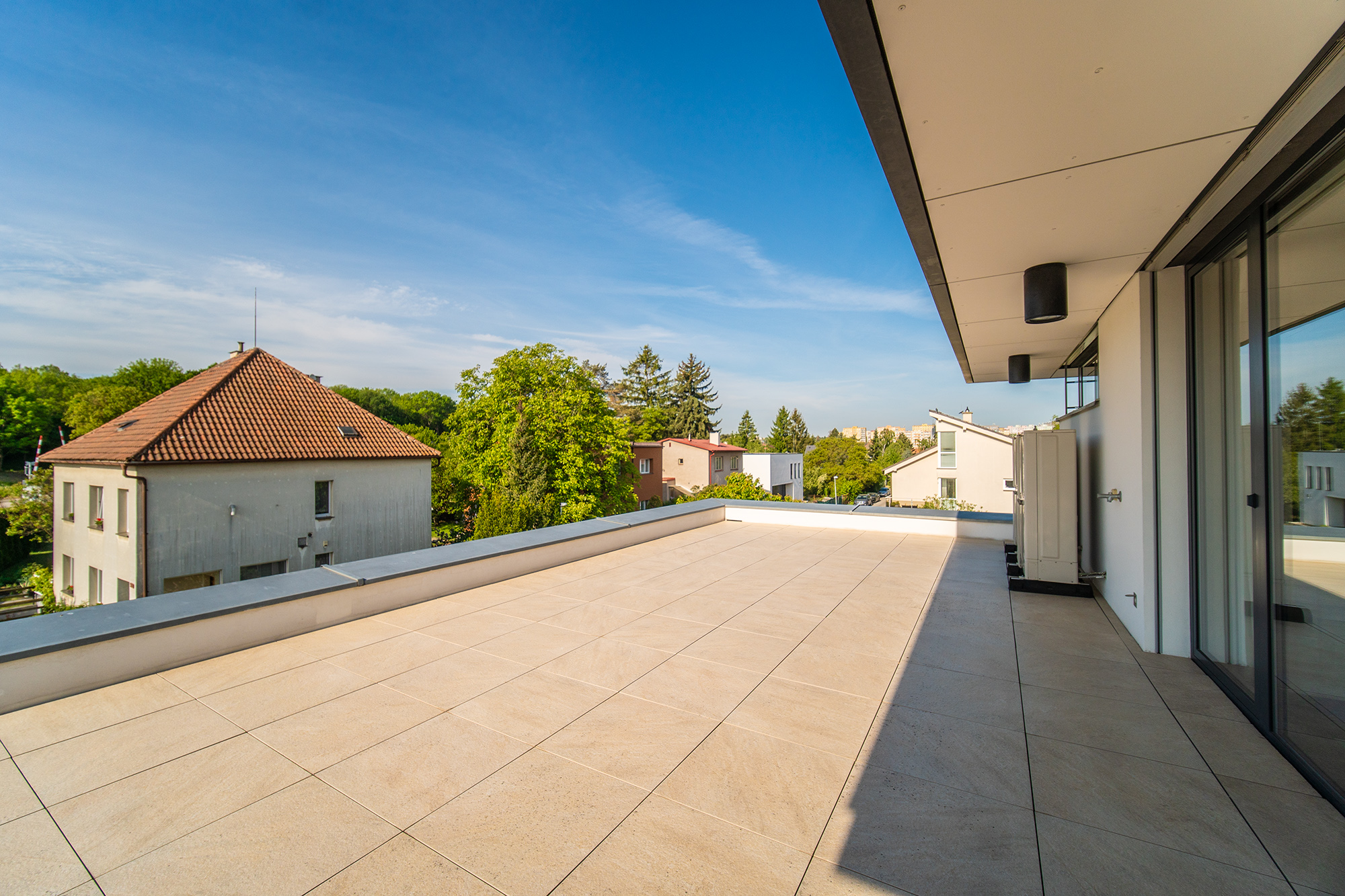 3 prostorné pokoje s vlastní šatnou a koupelnou, 2× terasa |