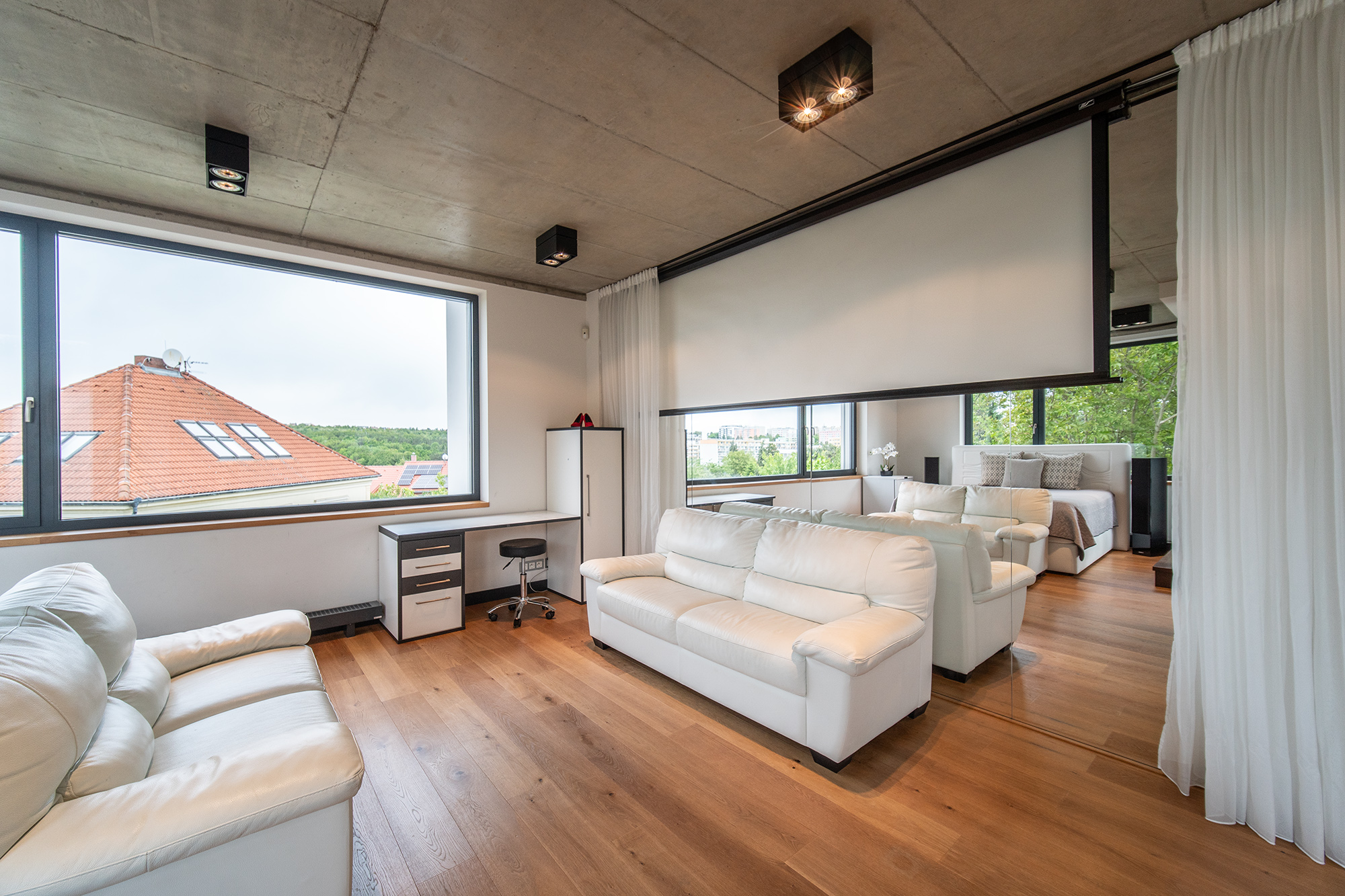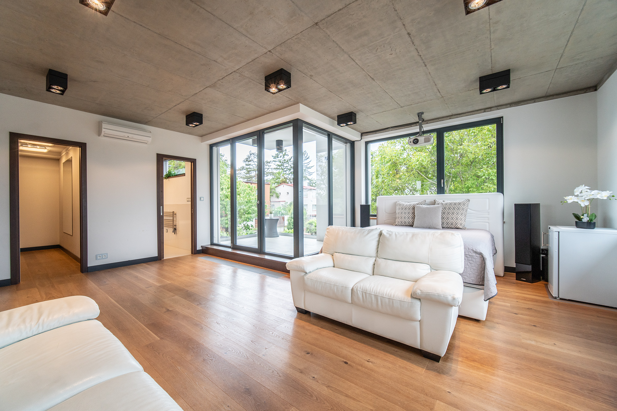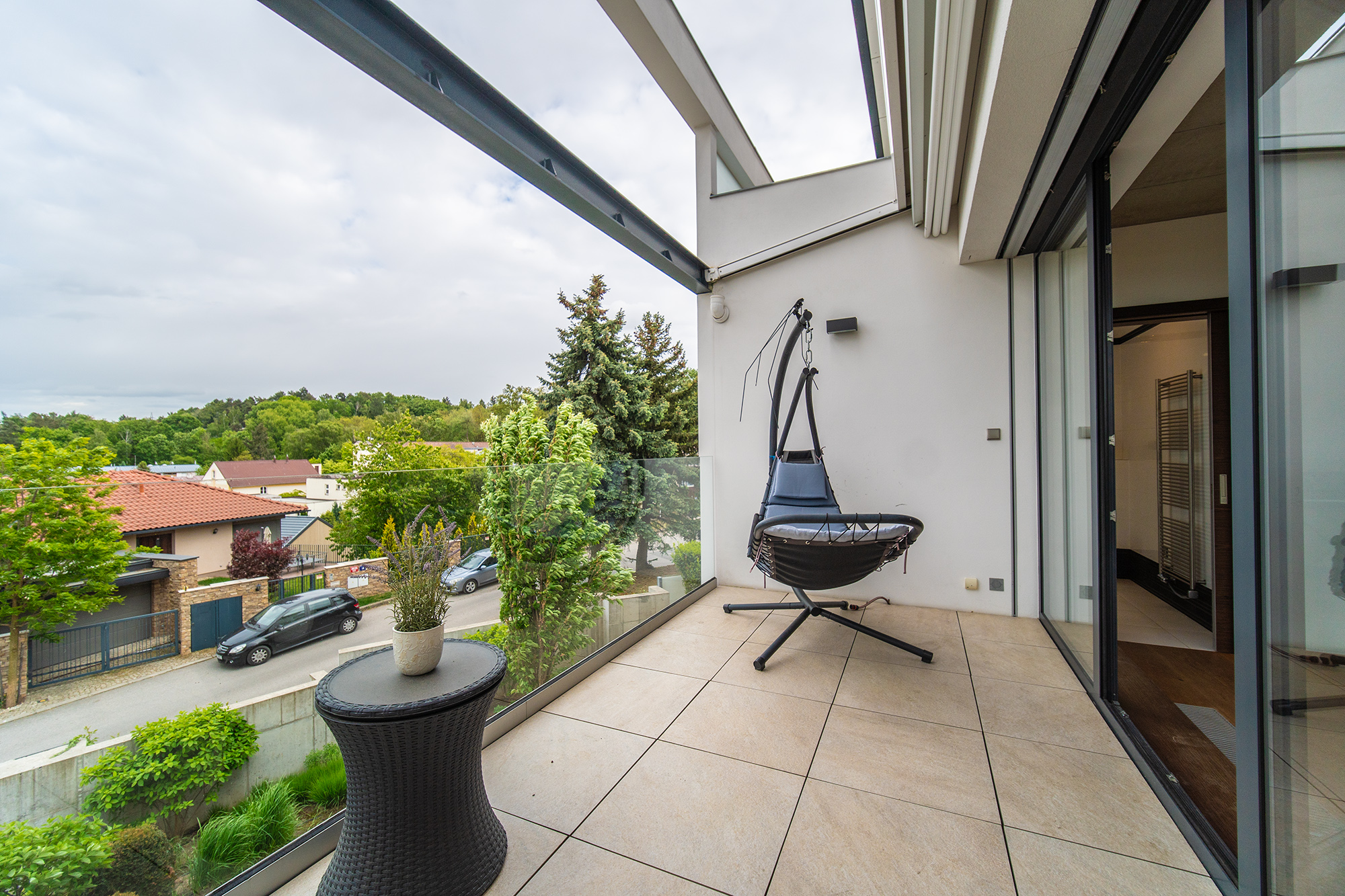 3 prostorné pokoje s vlastní šatnou a koupelnou, 2× terasa |